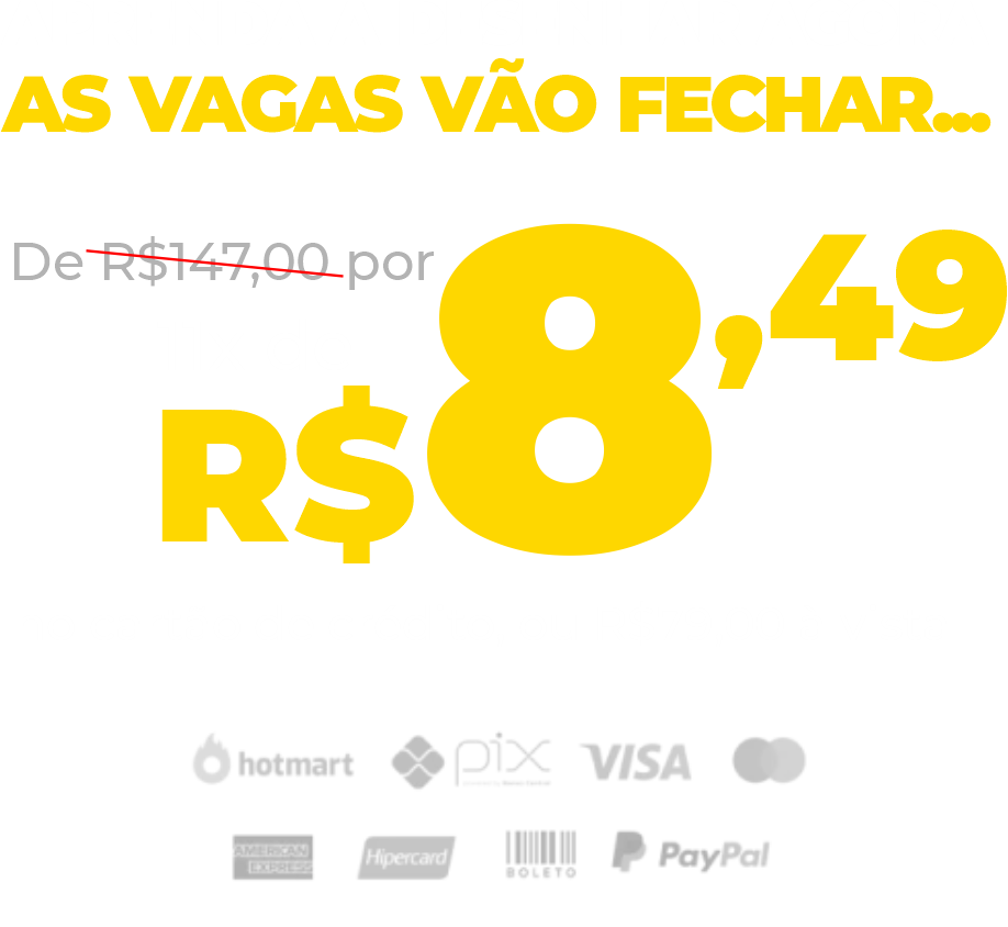 Conheça o curso, sem compromisso, se não gostar, não tiver resultados, ou por qualquer outro motivo, devolvemos o seu dinheiro, basta solicitar o reembolso em até 7 dias, sem precisar de justificativas.